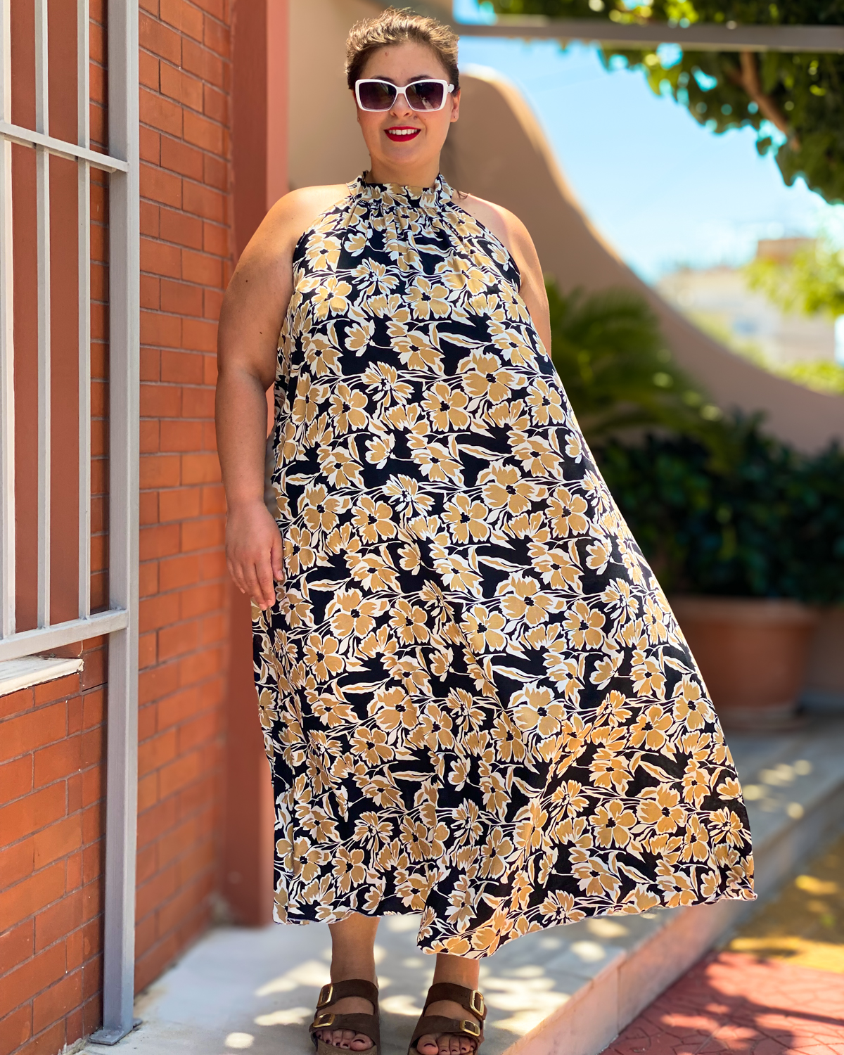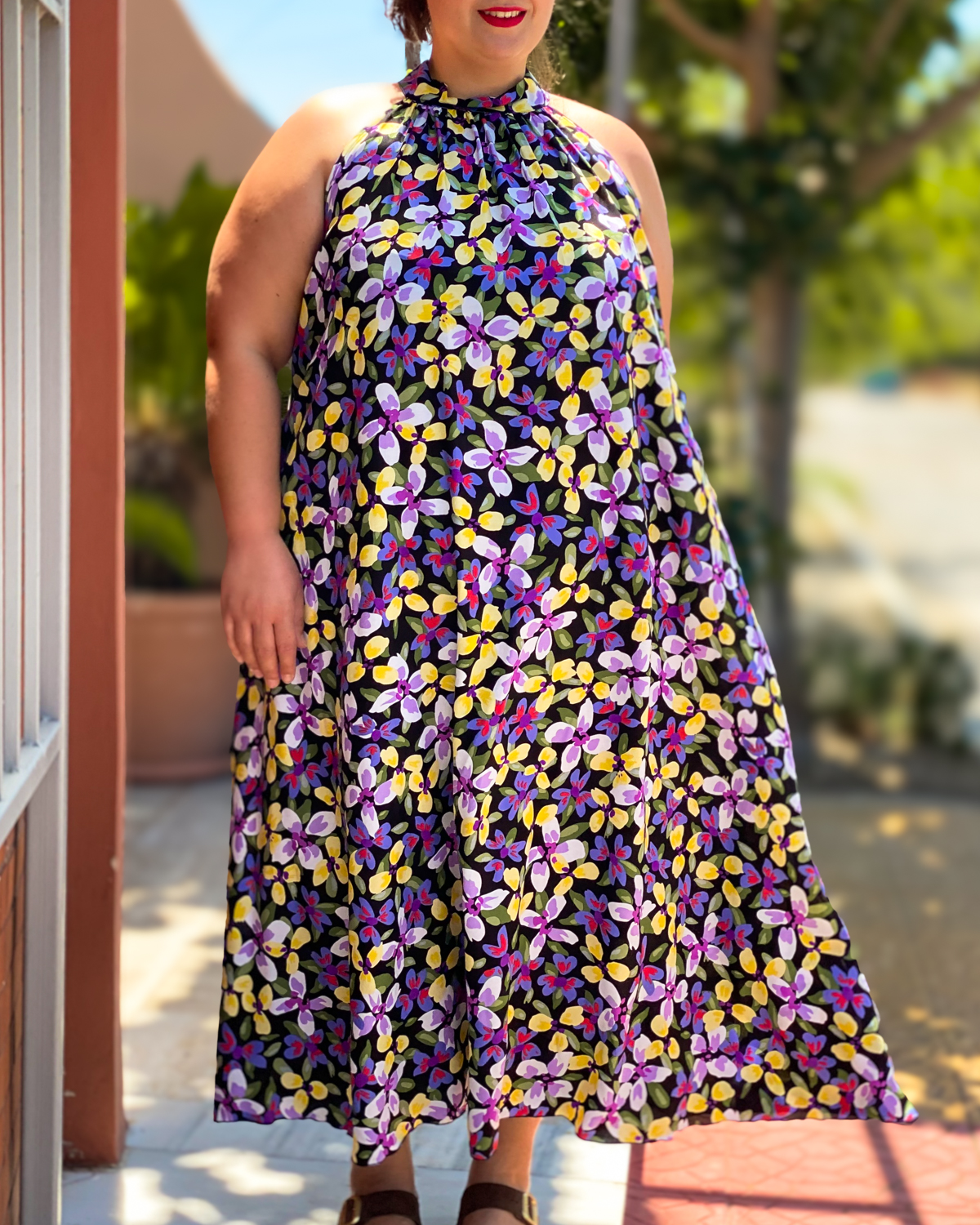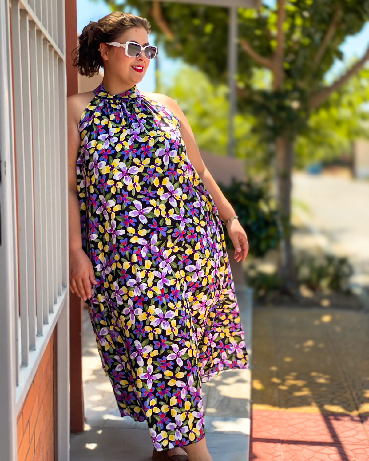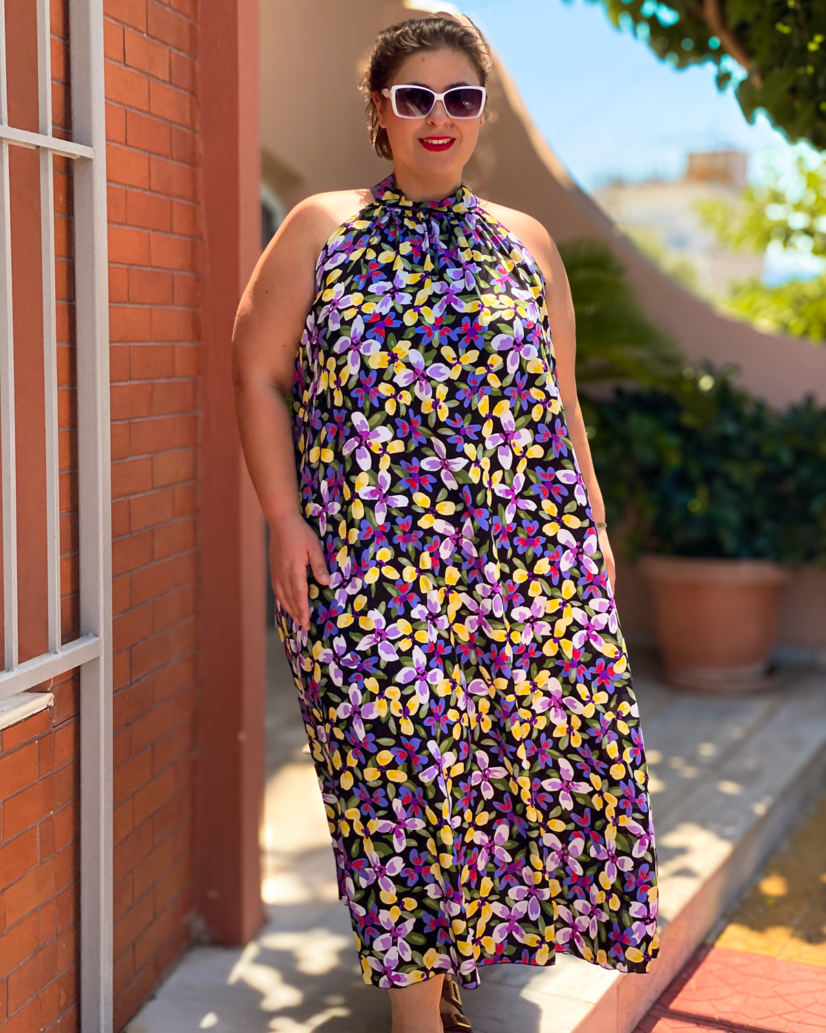 Ανάλαφρη Θηλυκότητα με Εξωτικό Αέρα Το “Floral Whisper” είναι ένα μακρύ φόρεμα με μαύρο φόντο και χρωματιστά λουλουδάτα μοτίβα που προσθέτουν ζωντάνια και φρεσκάδα. Με παρτούς ώμους και δέσιμο πίσω στον λαιμό, αποπνέει ρομαντισμό και κομψότητα, ενώ το αέρινο ύφασμα προσφέρει ανάλαφρη αίσθηση — ιδανική για τις ζεστές μέρες του καλοκαιριού.