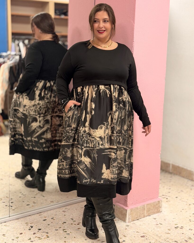 Ανακάλυψε το απόλυτο hybrid φόρεμα που ενώνει το καθημερινό comfort με την elegant αισθητική. Το επάνω μέρος είναι φτιαγμένο από μαλακό, ελαστικό Βούτυρο Ποντοστόφα, προσφέροντας άνεση και τέλεια εφαρμογή στο στήθος (100 έως 135cm). Ιδανικό για γυναίκες που θέλουν cozy αίσθηση χωρίς να χάνουν το στυλ τους.