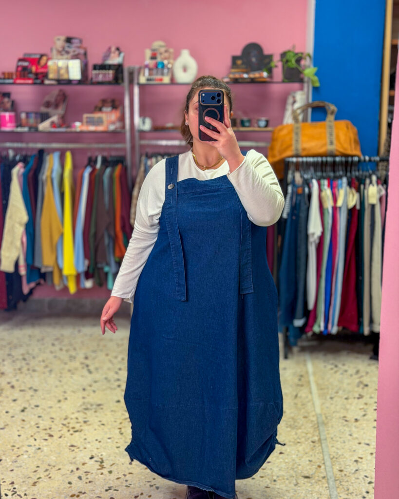 Αυτή η jean plus size σαλοπέτα–φόρεμα είναι η απόλυτη επιλογή για άνεση και στυλ χωρίς περιορισμούς. Με baggy εφαρμογή, προσφέρει ελευθερία κινήσεων και χαλαρή γραμμή που κολακεύει το σώμα.